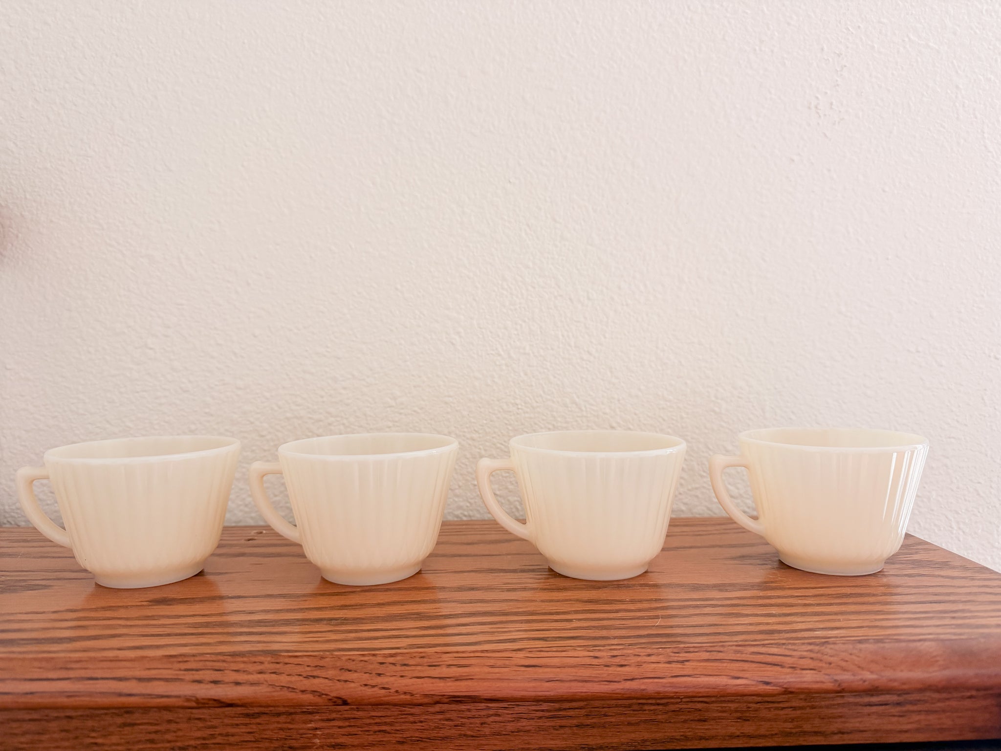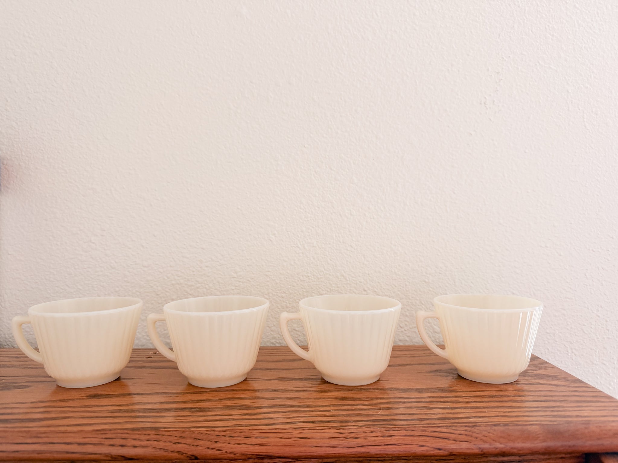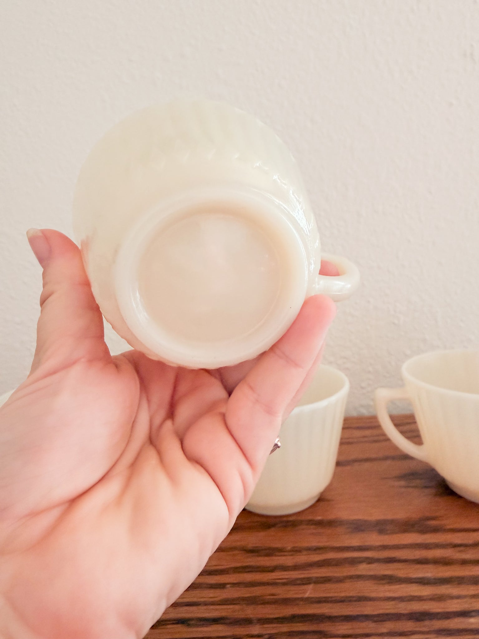 -This gorgeous ivory teacup set is sold as a set of 4. They have lovely subtle detailing. They are just slightly translucent when in the light (pictured).