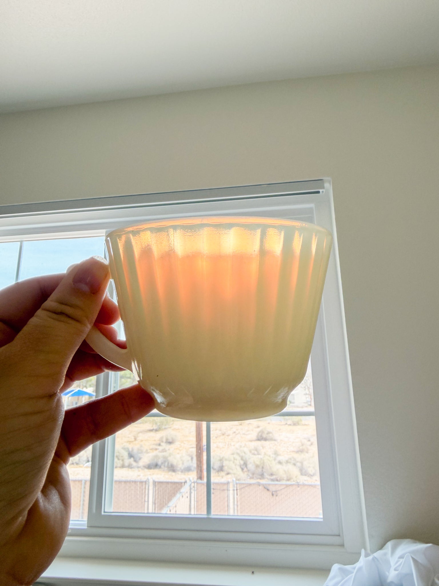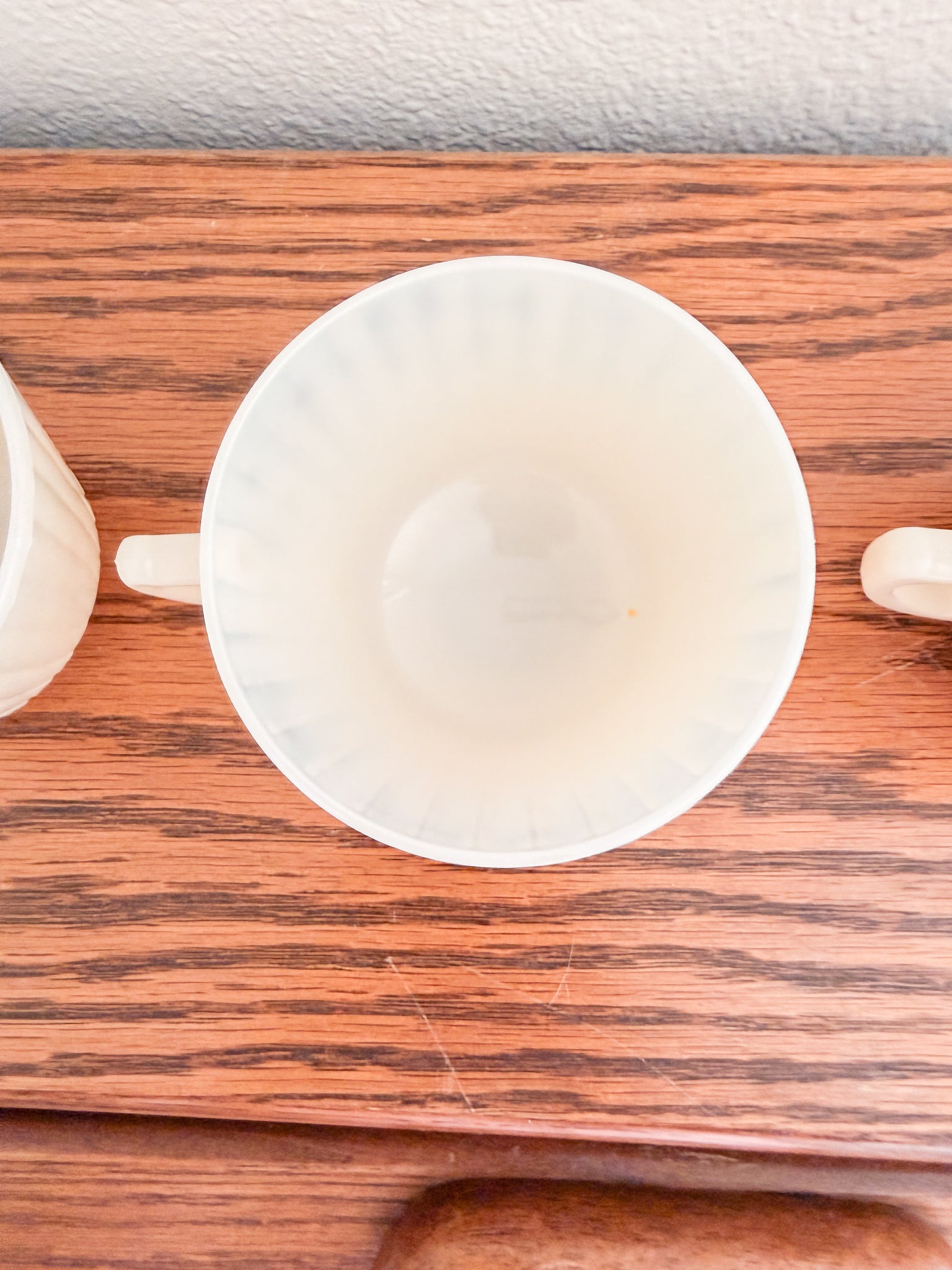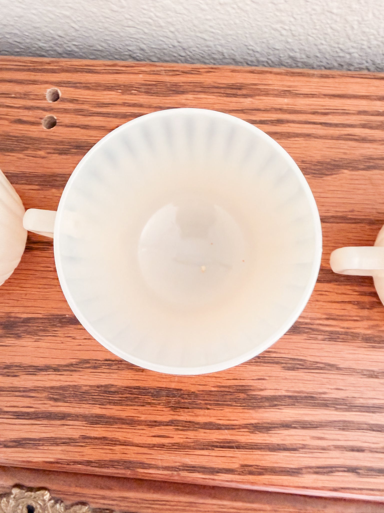 -This gorgeous ivory teacup set is sold as a set of 4. They have lovely subtle detailing. They are just slightly translucent when in the light (pictured).