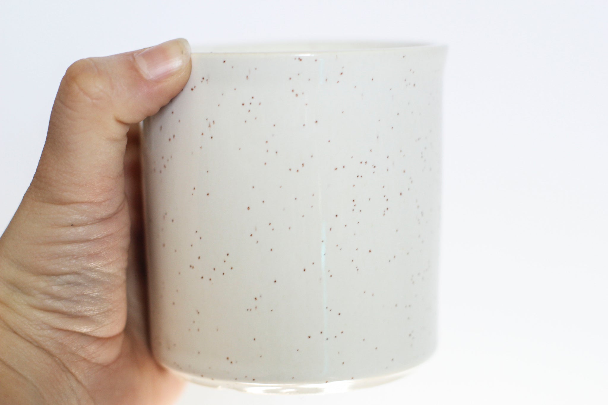 -This little cup is exactly the kind of multi use piece I love. There's no handles, but it's perfect for holding a small plant, juice, or could serve just a well as a pen holder.