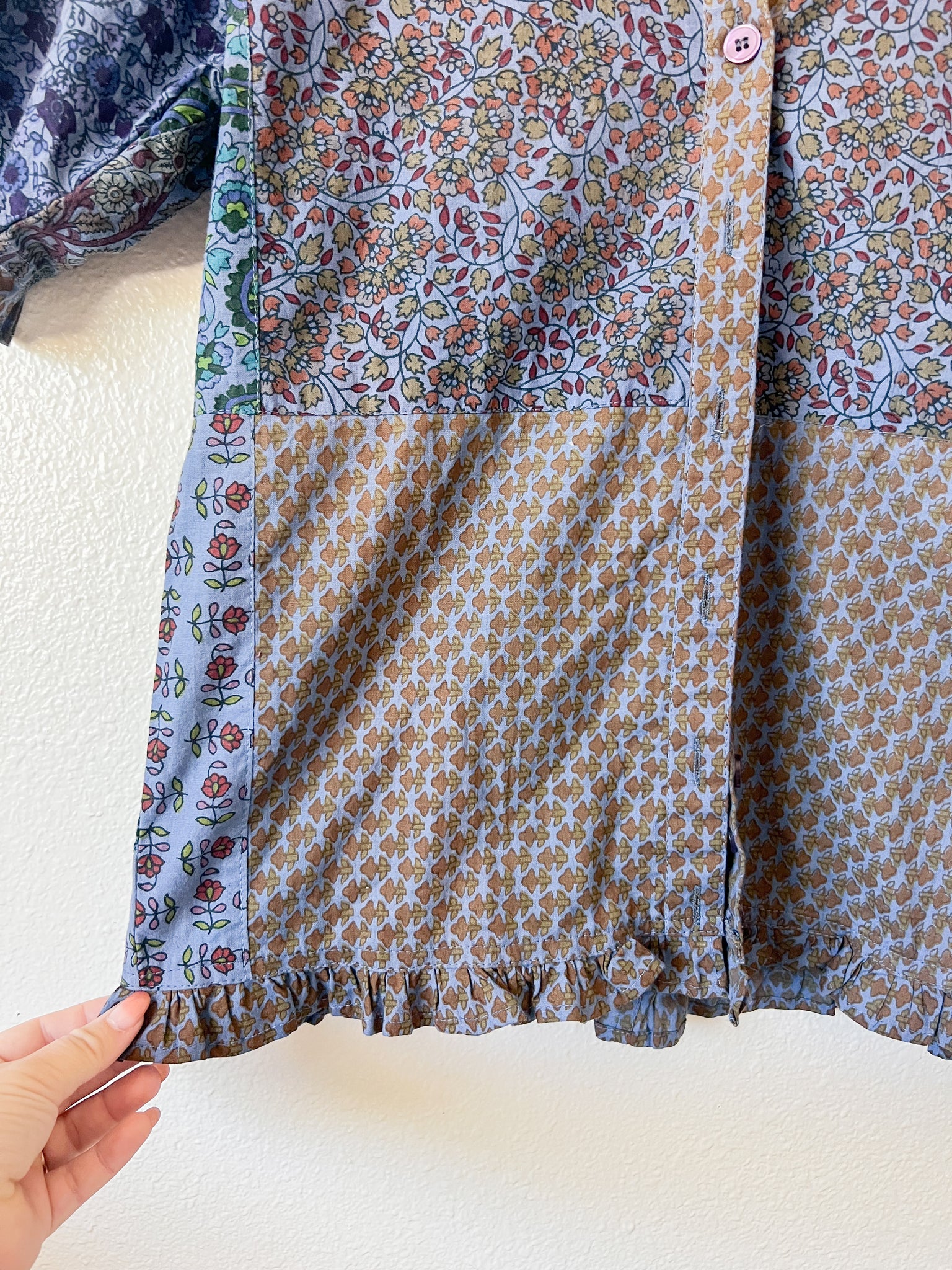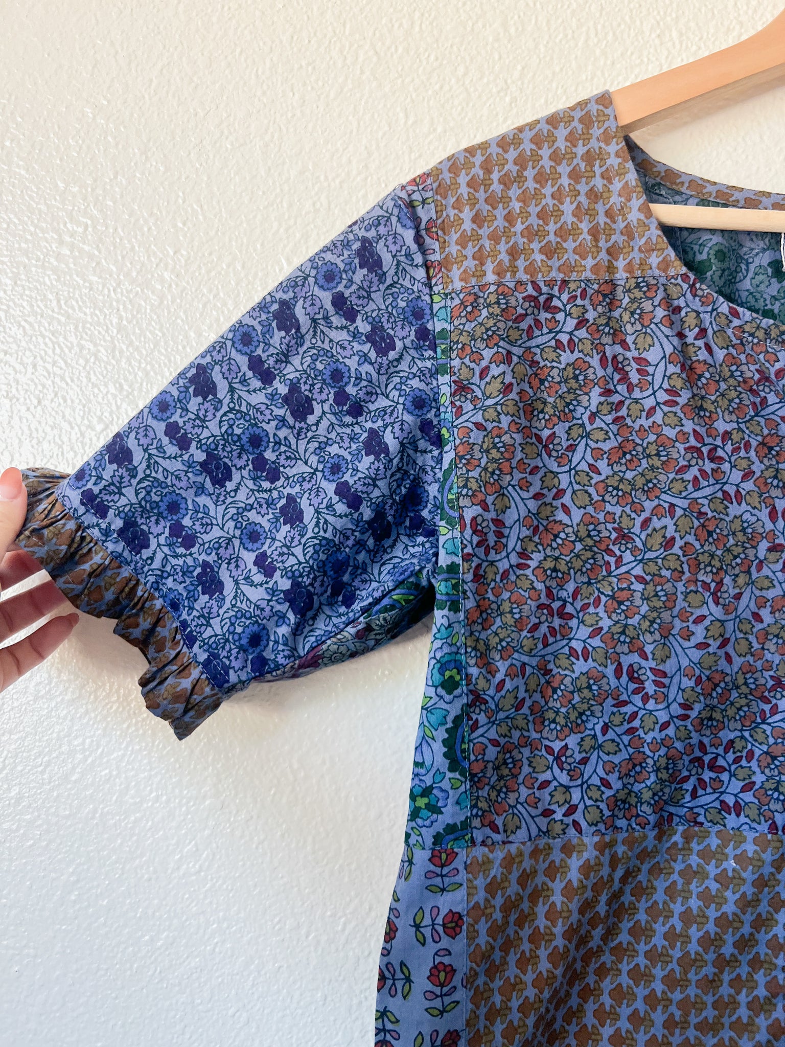 -This stunning floral blouse is made of 100% cotton. The sleeves have the sweetest detailing. The pattern is a patchwork floral.