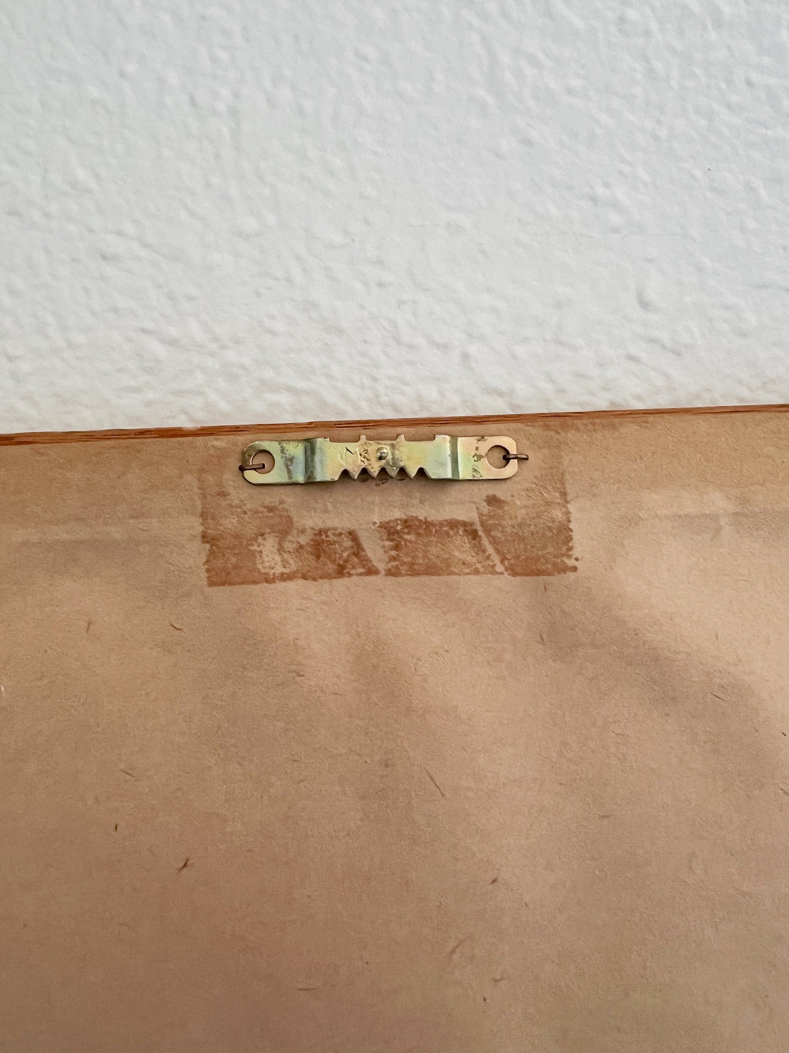 -There are two prints framed in warm wooden prints with teal matting. Each print features a different picture. They are sold as a set.