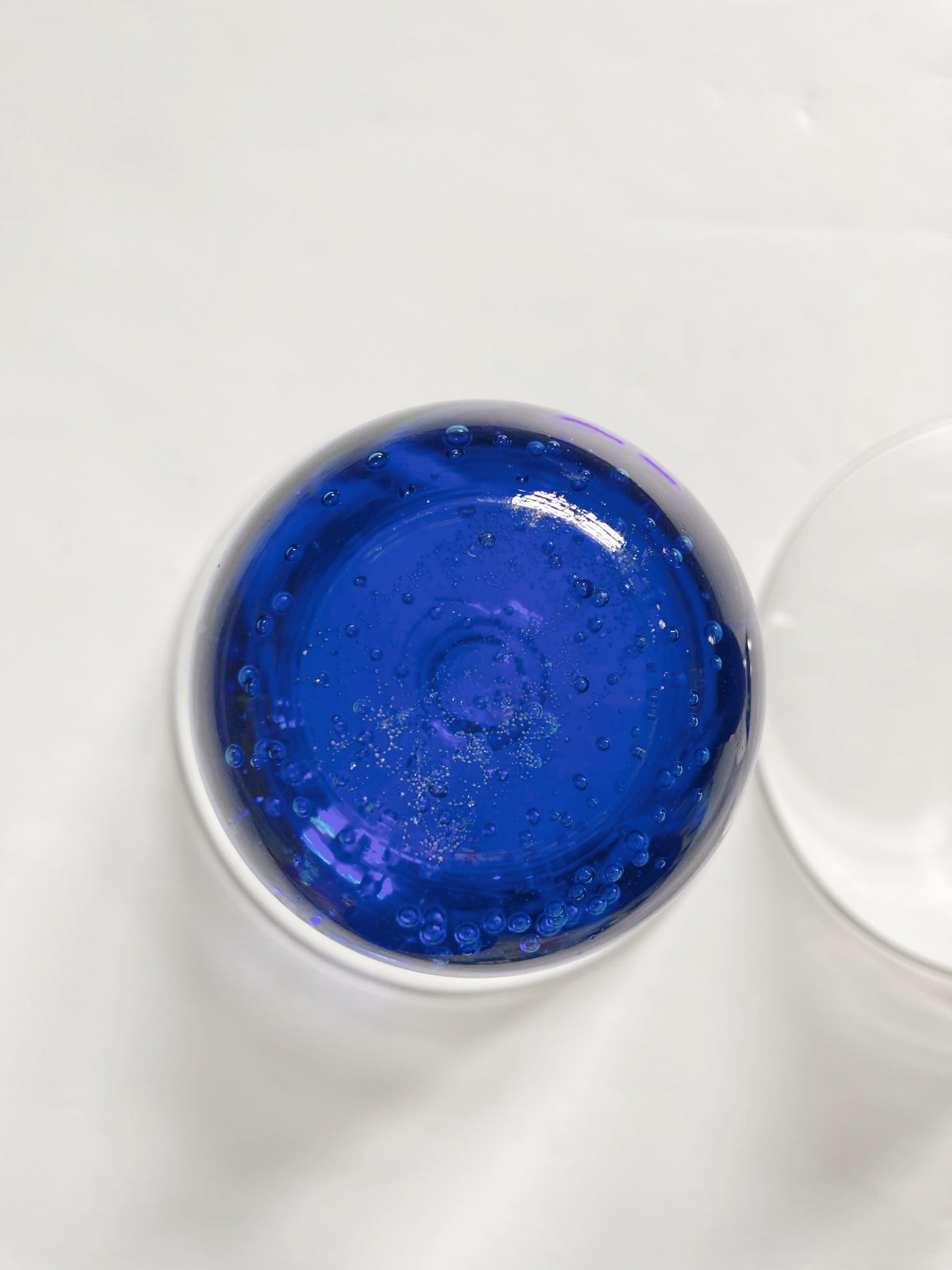 -There are three glasses and they are sold as a set. Each base has a different color (purple, amber, and blue). The glass is bubbled and beautiful.
