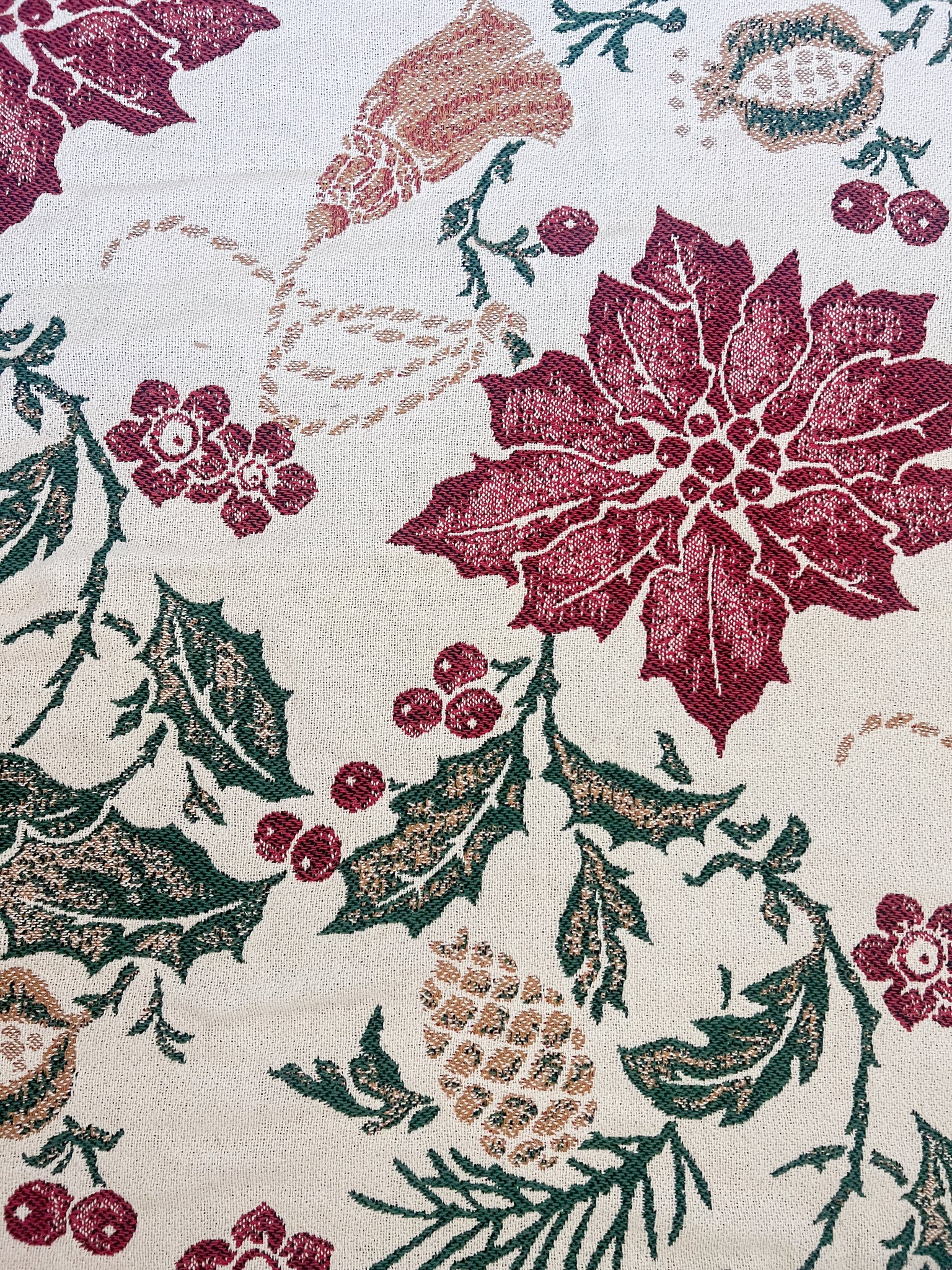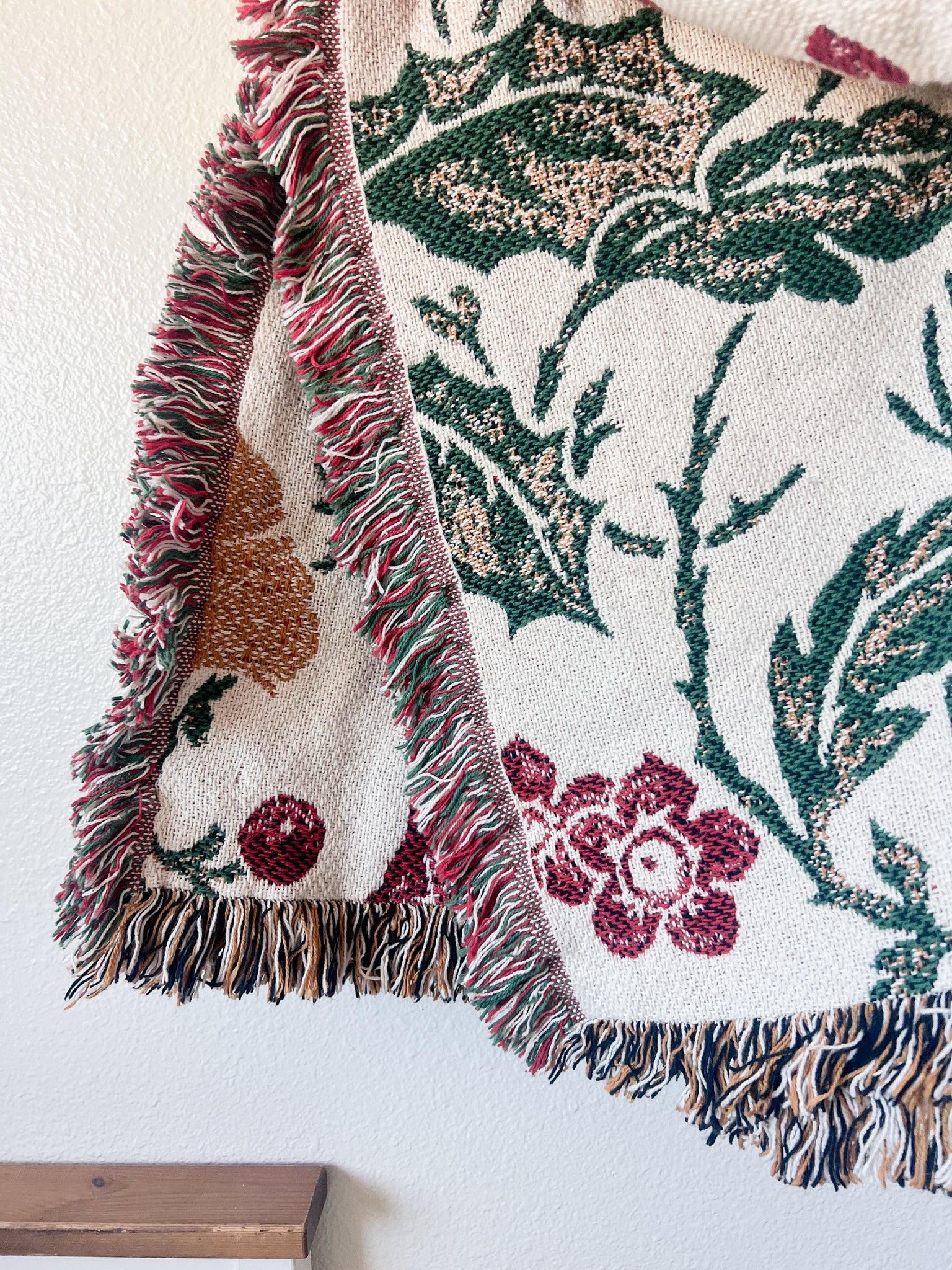 -These woven blankets are my favorite for the holidays and for year round. this one has beautiful floral/holly and berry imagery.